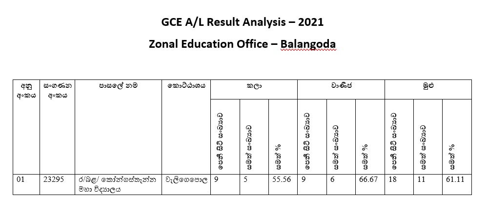 අ .පො .ස උසස් පෙල ප්රතිඵල විශ්ලේශණය